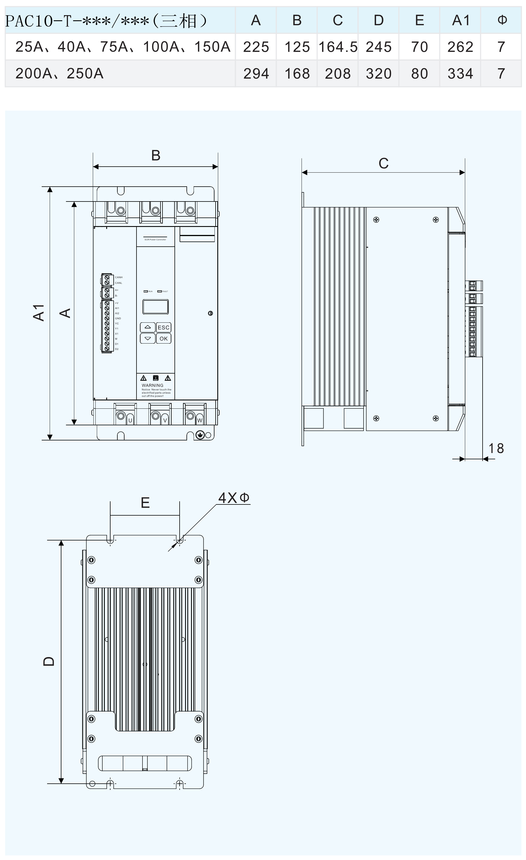 Output Rated voltage: 0 ~ 98% of the main circuit power supply voltage (phase shift control) Rated current: 25~450A