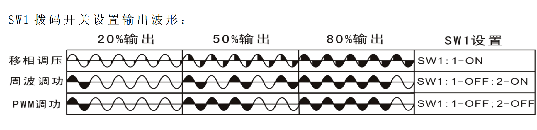 調(diào)相控制:連續(xù)調(diào)壓 調(diào)功控制:阻性周波過(guò)零調(diào)功 |