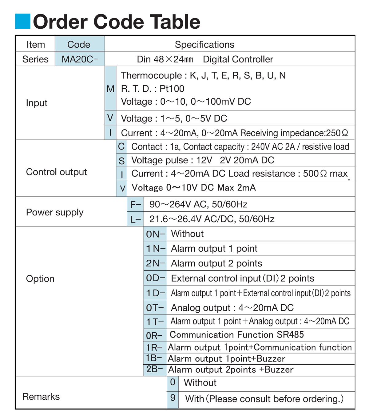 MA20 series digital controllers |