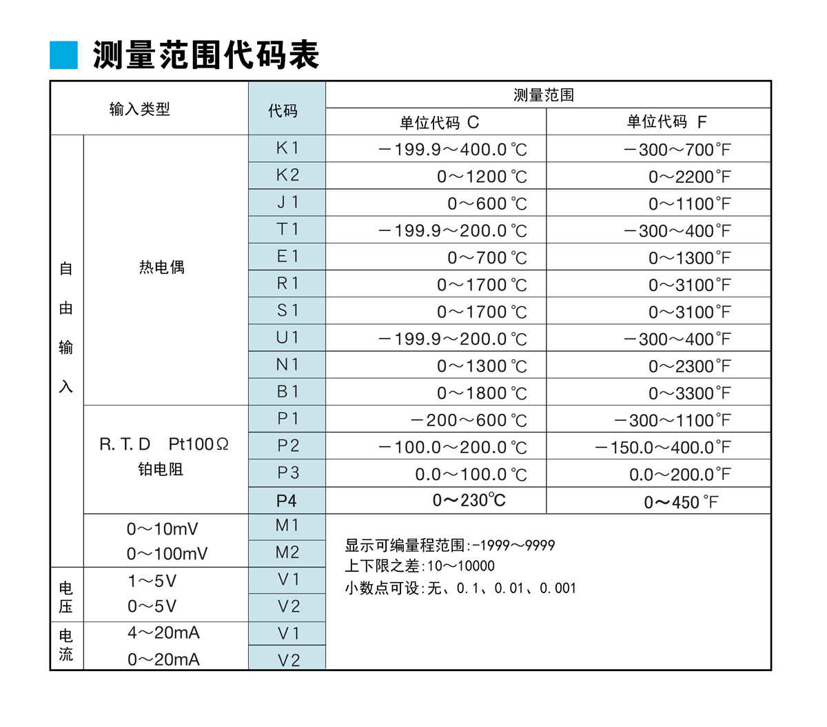 | 輸入類型 | 熱電偶、鉑電阻、電流、電壓 |